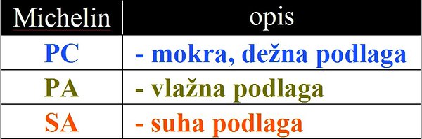 3) pnevmatike velikosti 13" ÷ 16" - oznaka PA